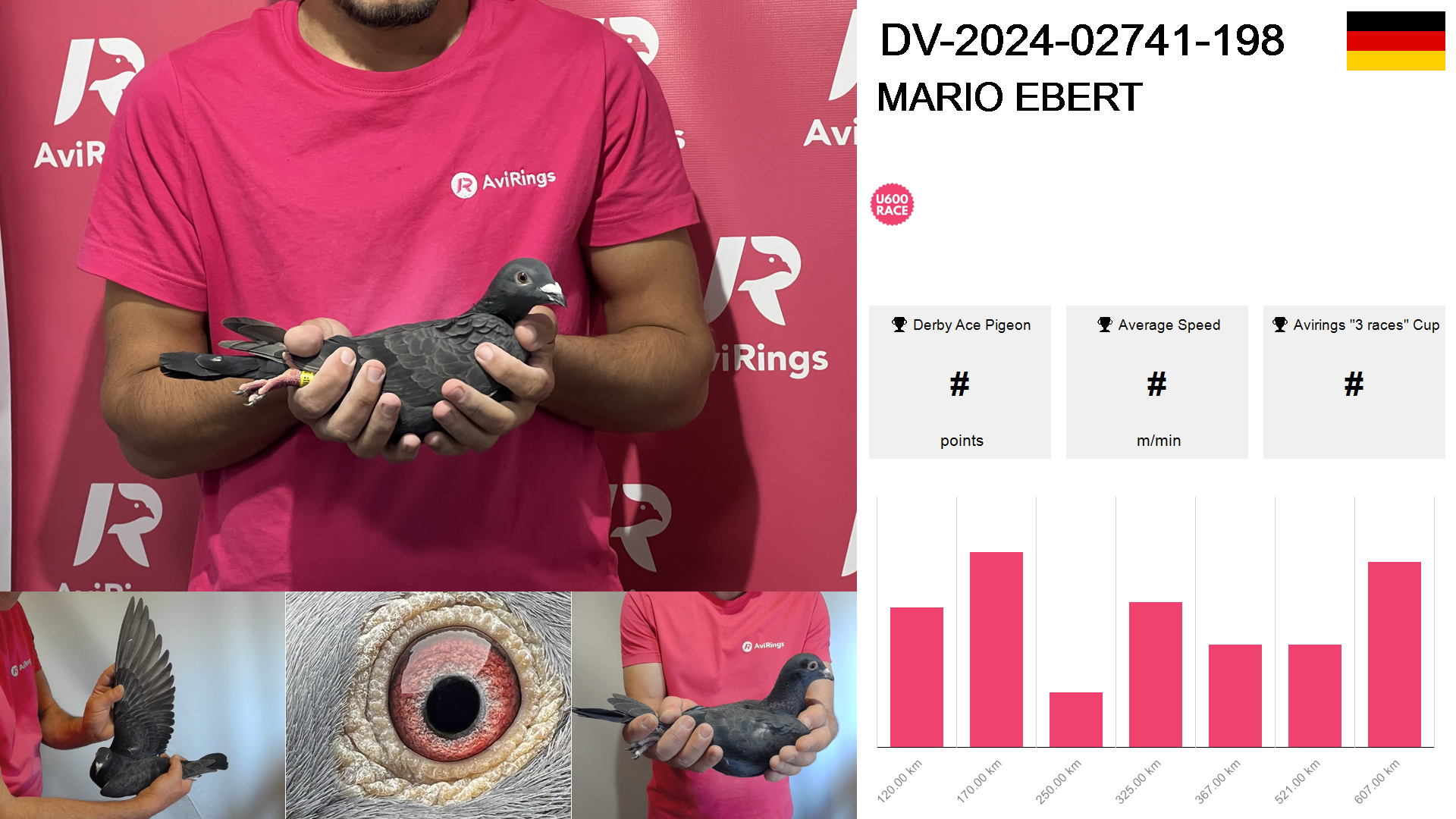 | Race | Position | Number of pigeons | Percent | Speed | Distance |