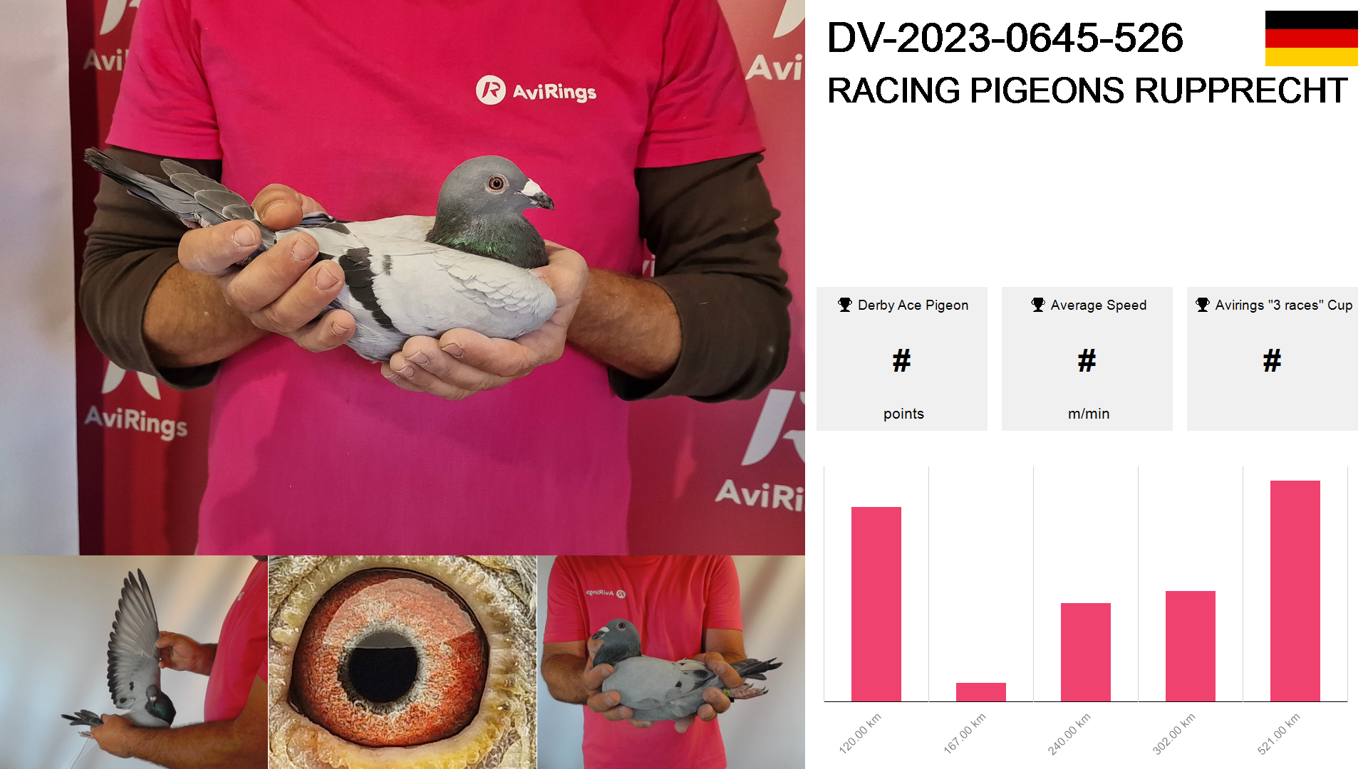 | Race | Position | Number of pigeons | Percent | Speed | Distance |
