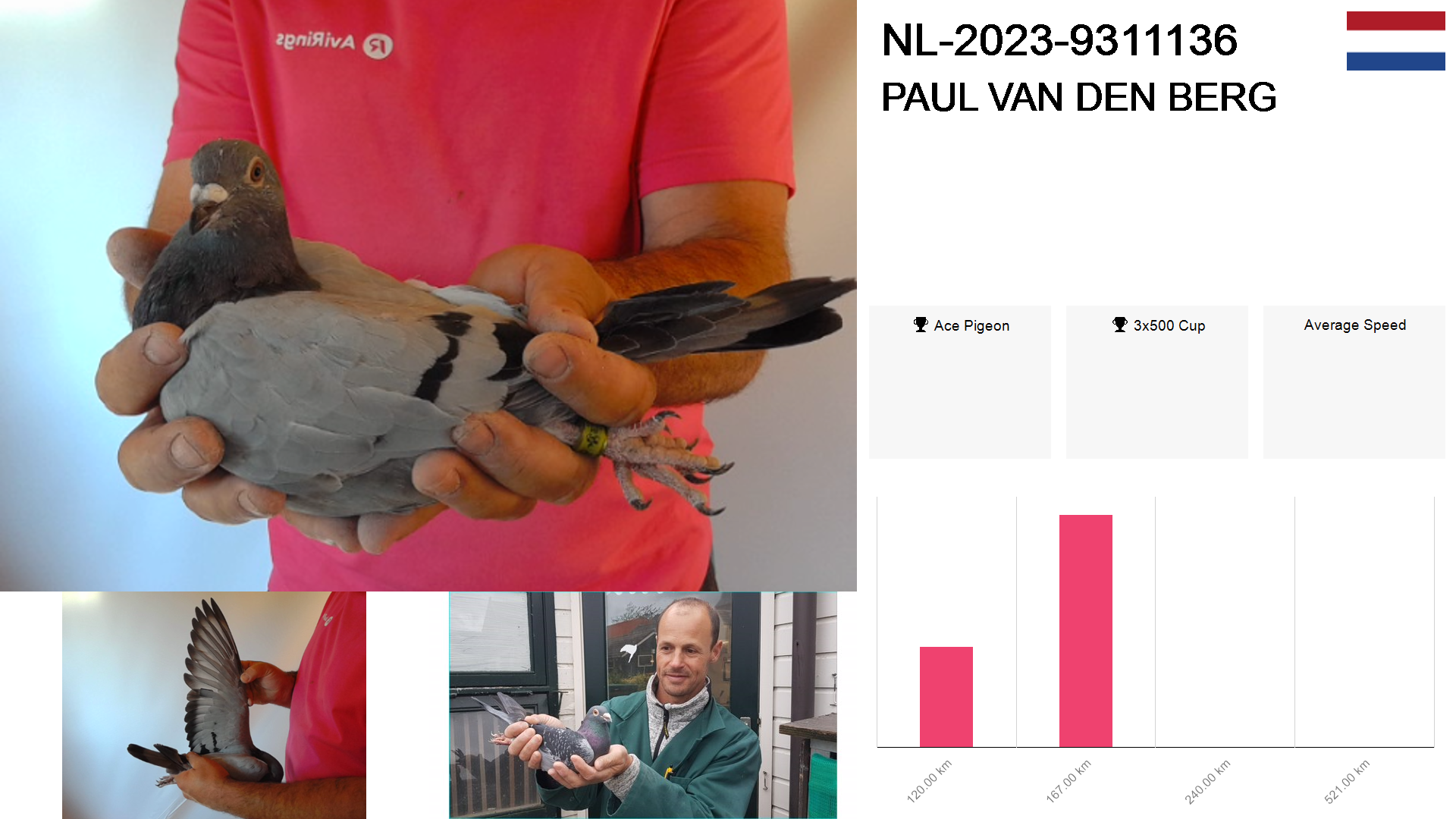 | Race | Position | Number of pigeons | Percent | Speed | Distance |