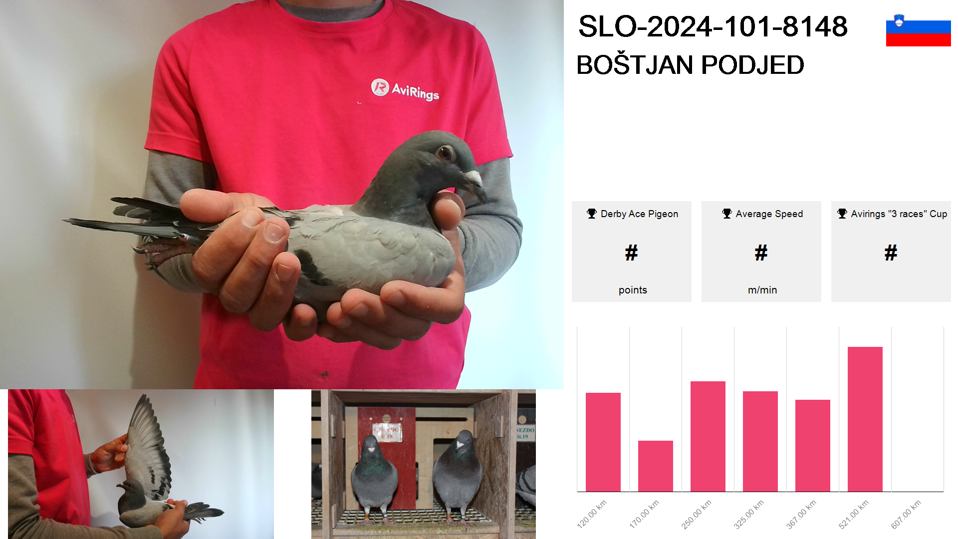 | Race | Position | Number of pigeons | Percent | Speed | Distance |