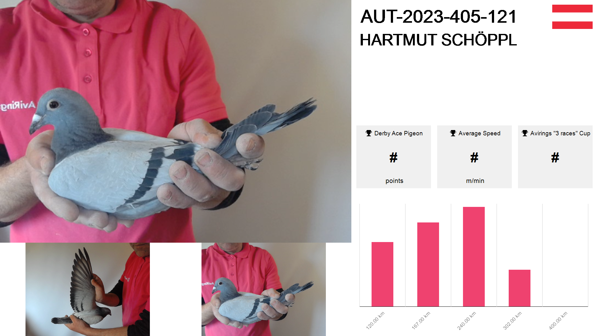 | Race | Position | Number of pigeons | Percent | Speed | Distance |