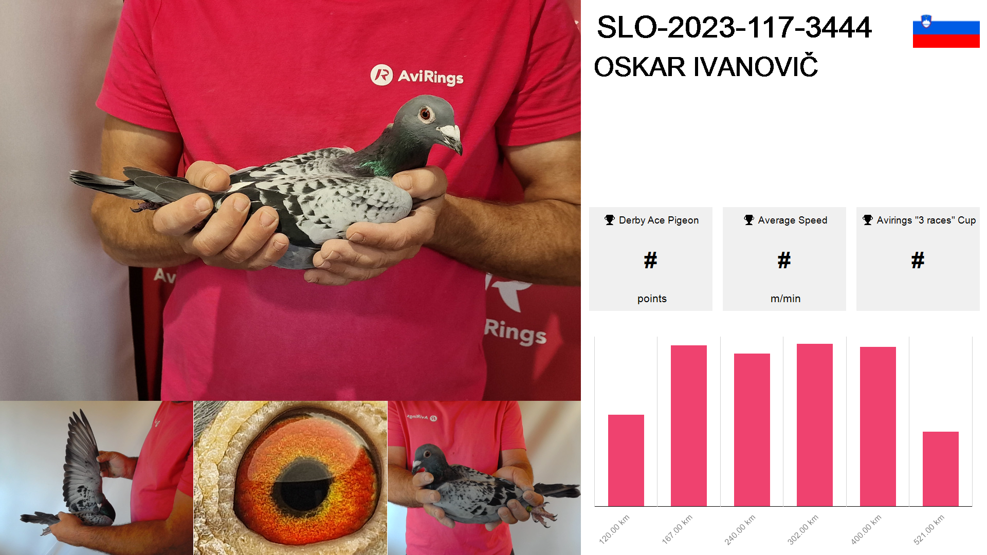 | Race | Position | Number of pigeons | Percent | Speed | Distance |