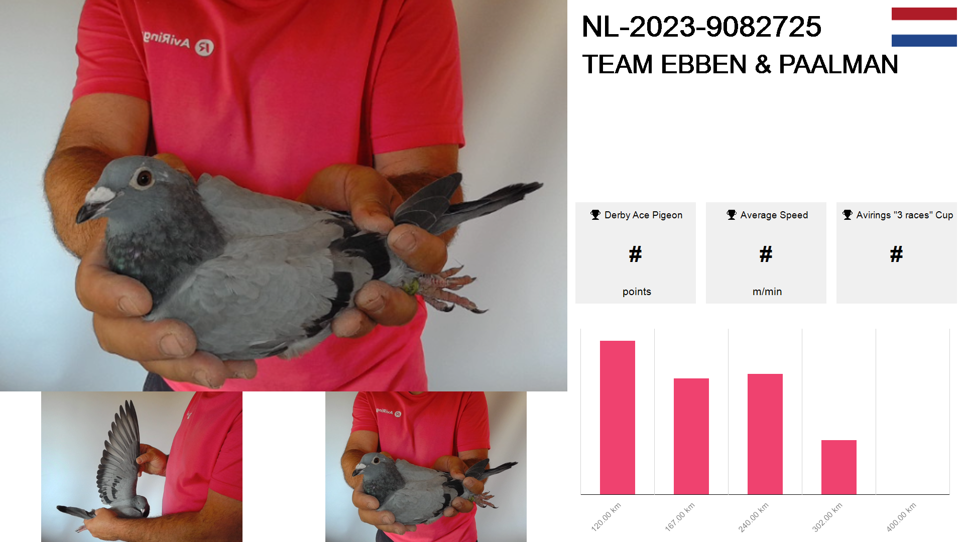 | Race | Position | Number of pigeons | Percent | Speed | Distance |