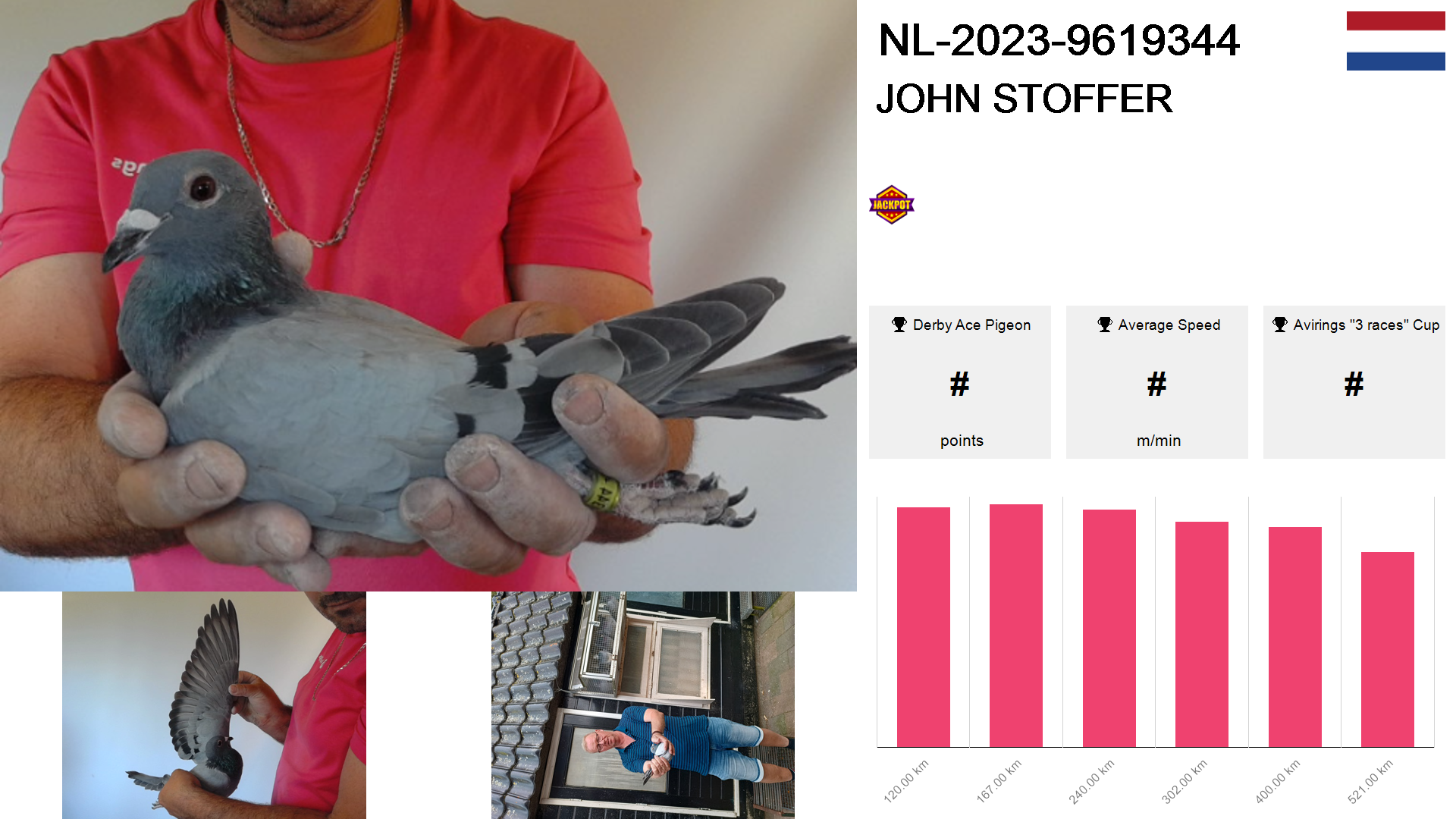 | Race | Position | Number of pigeons | Percent | Speed | Distance |