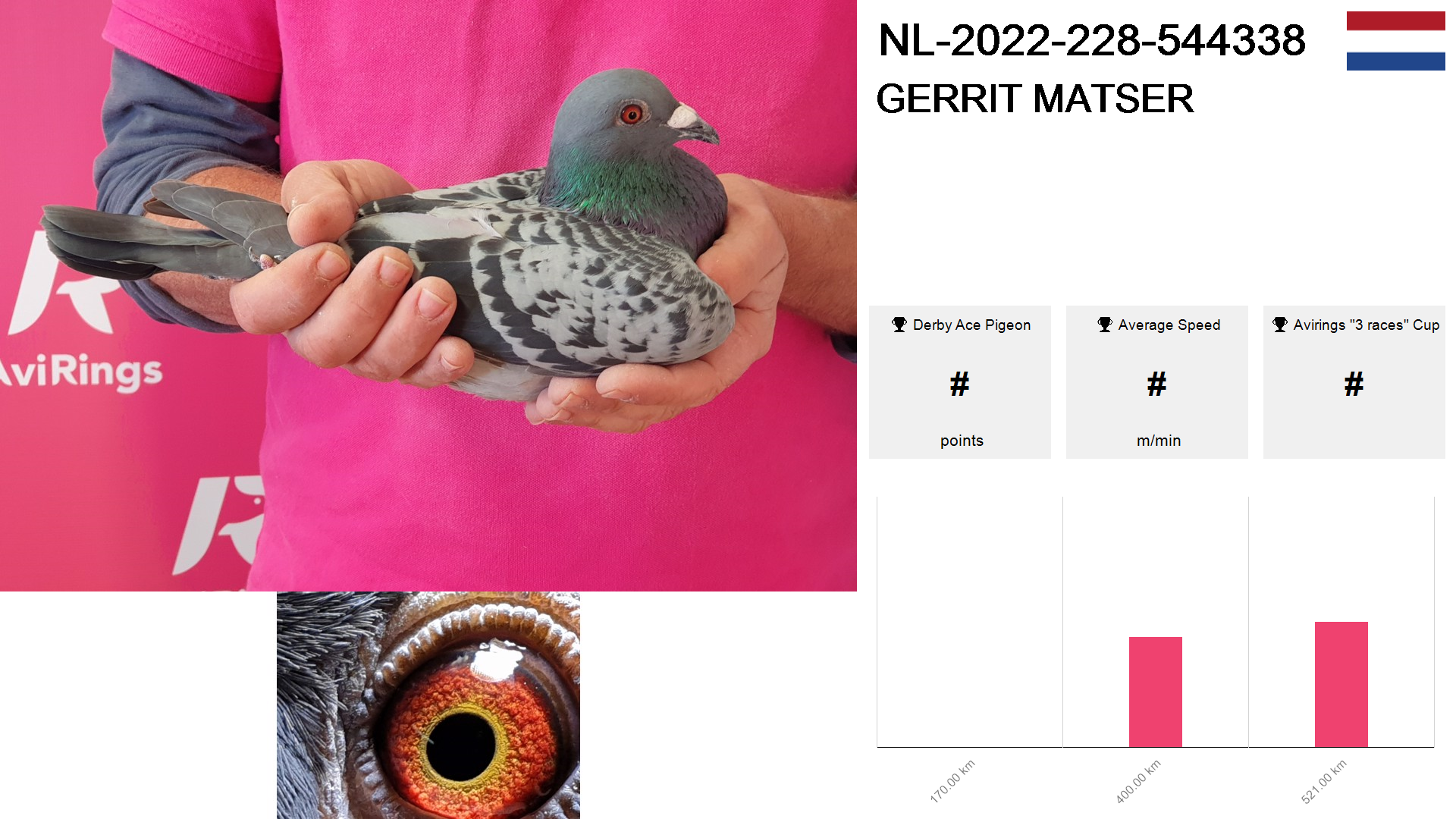 | Race | Position | Number of pigeons | Percent | Speed | Distance |