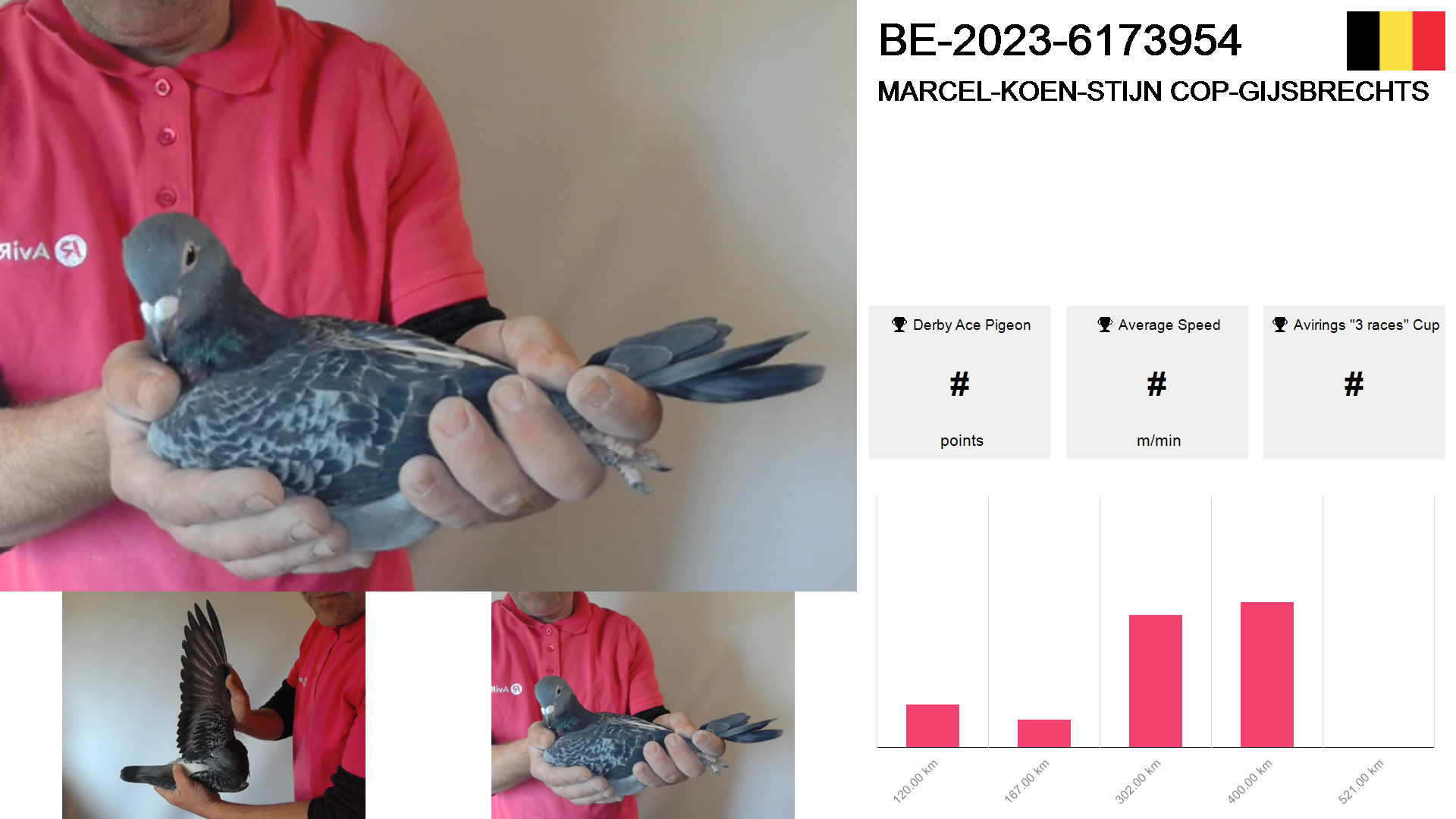 | Race | Position | Number of pigeons | Percent | Speed | Distance |