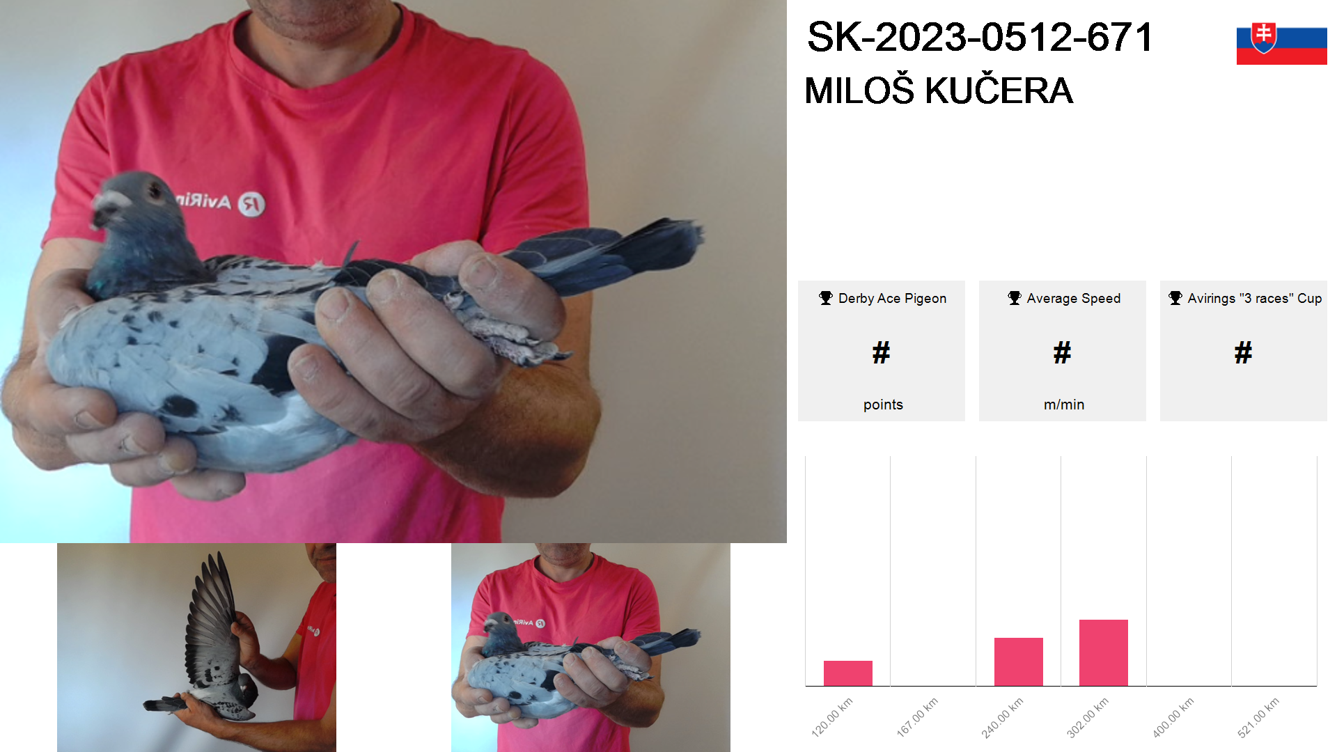 | Race | Position | Number of pigeons | Percent | Speed | Distance |