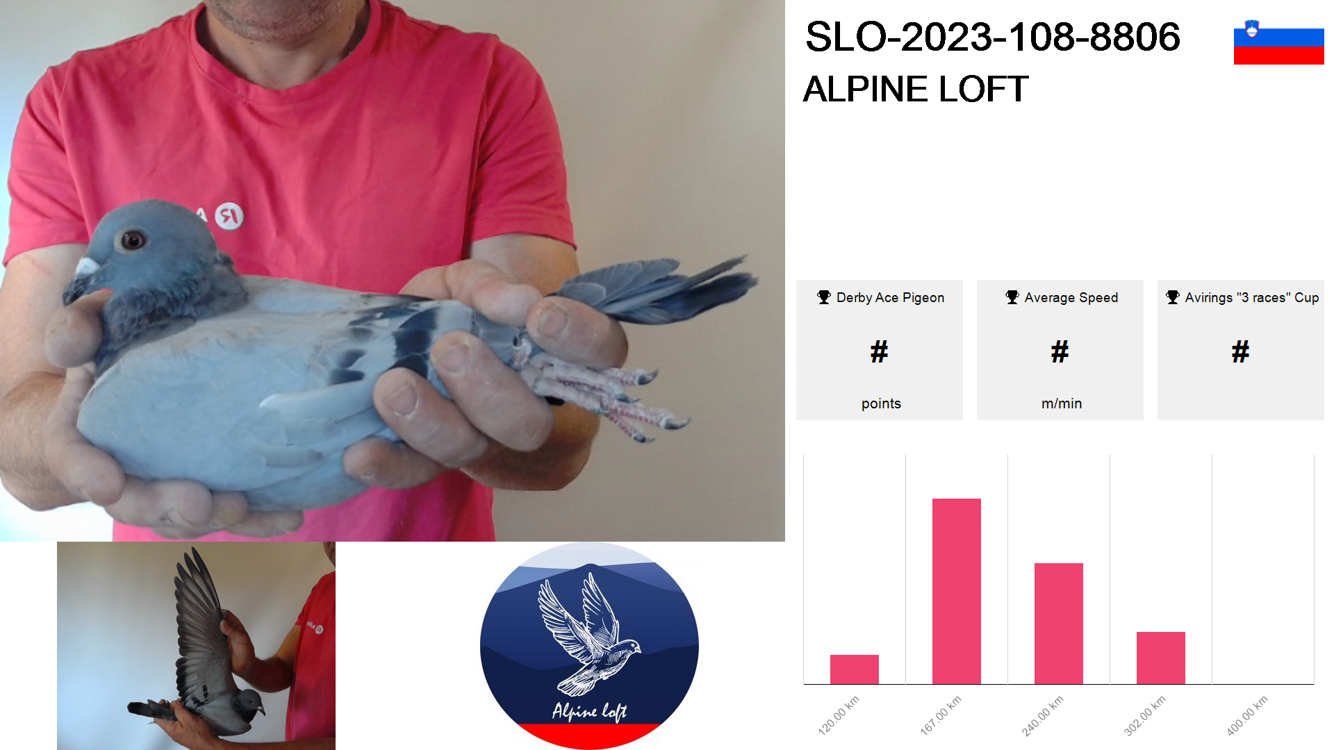 | Race | Position | Number of pigeons | Percent | Speed | Distance |