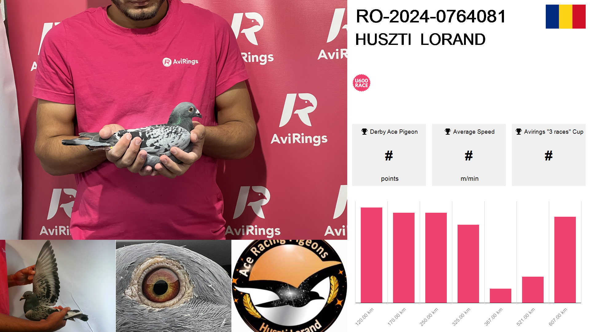 | Race | Position | Number of pigeons | Percent | Speed | Distance |