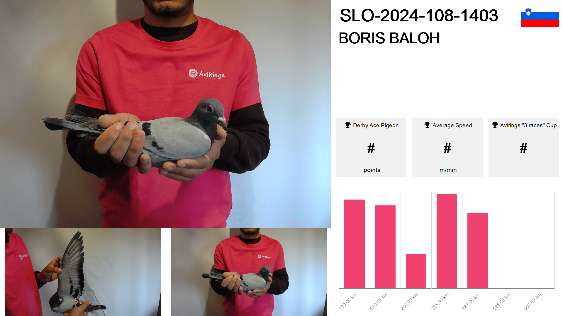 | Race | Position | Number of pigeons | Percent | Speed | Distance |