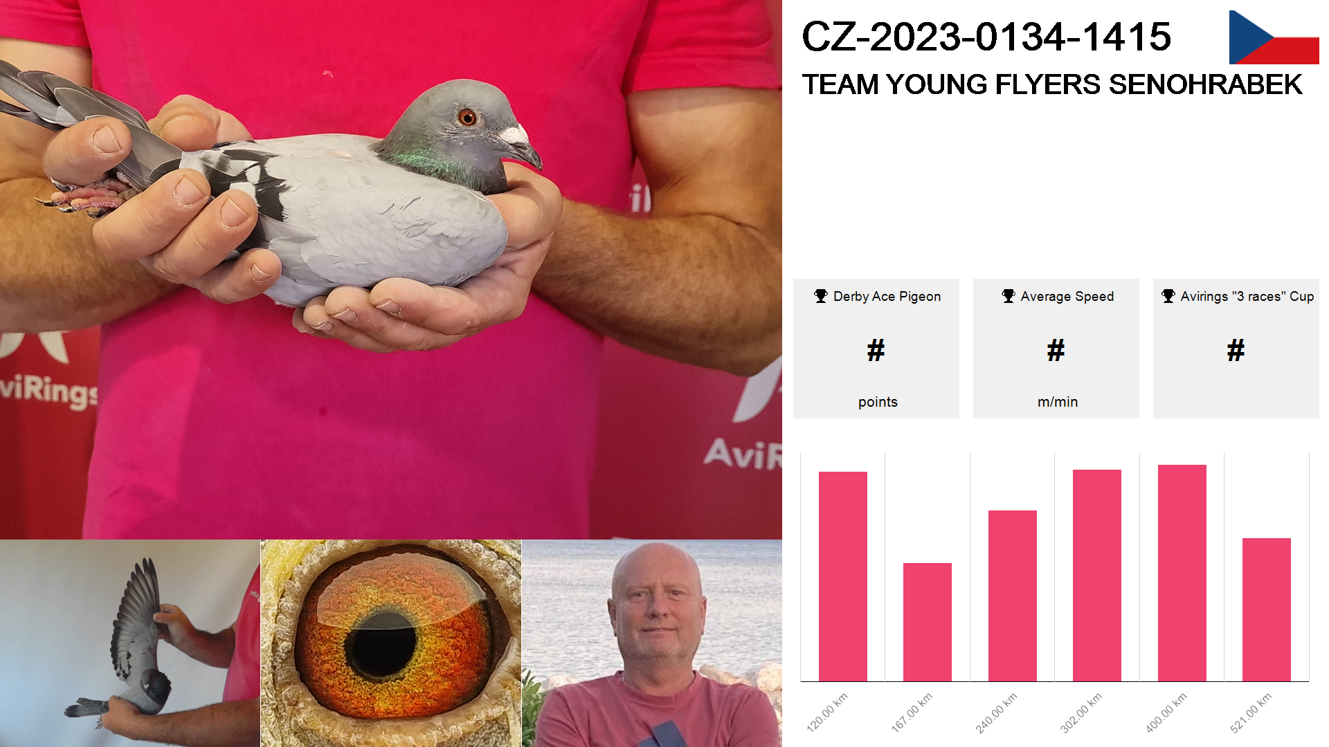 | Race | Position | Number of pigeons | Percent | Speed | Distance |