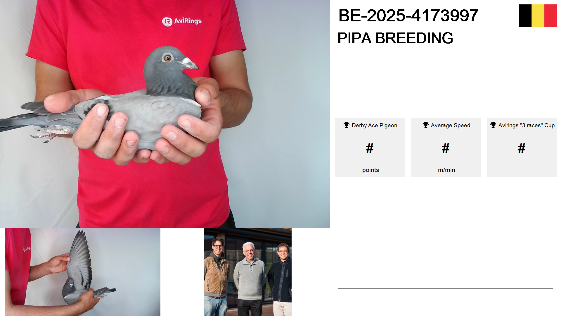 | Race | Position | Number of pigeons | Percent | Speed | Distance |