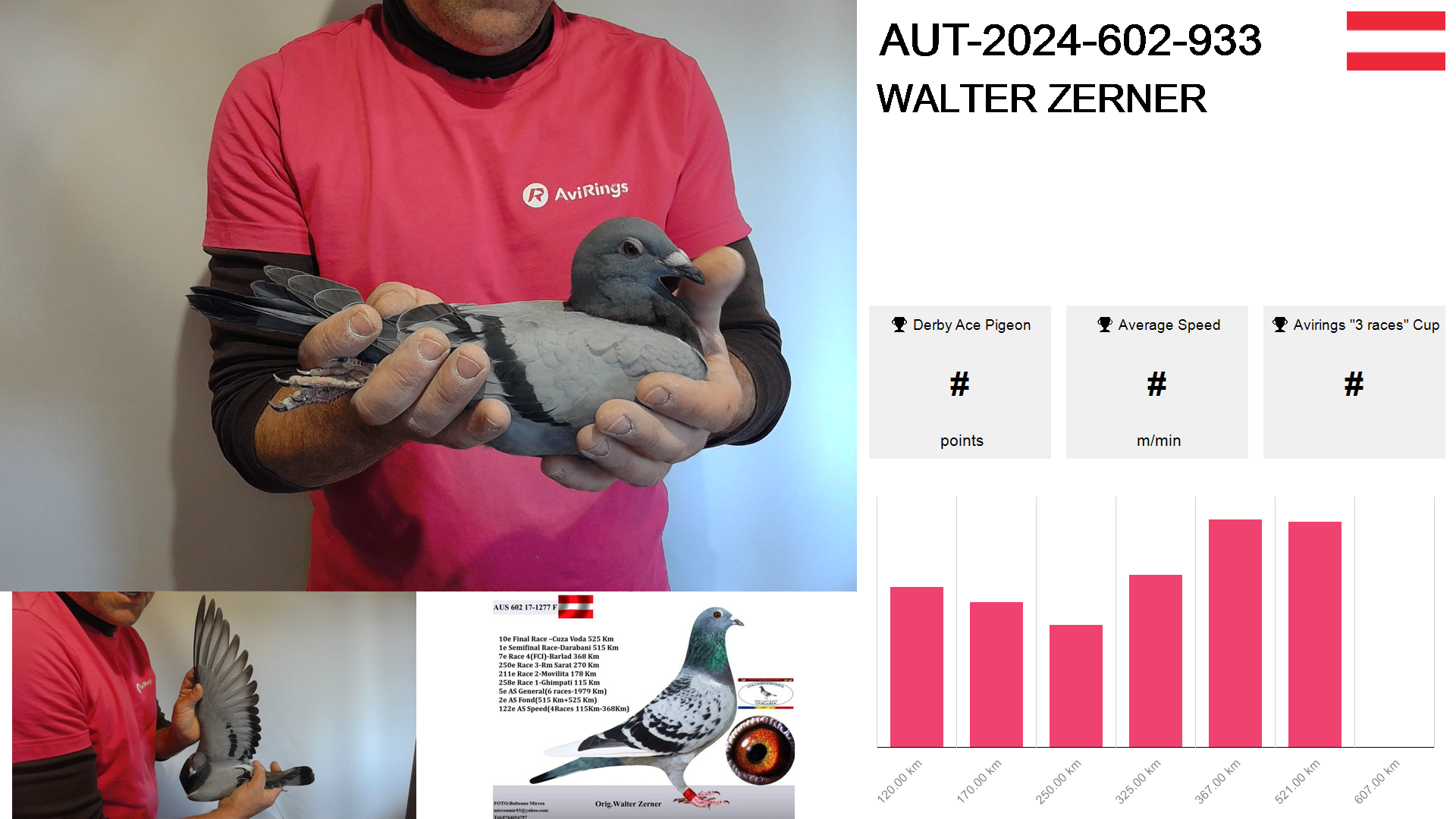 | Race | Position | Number of pigeons | Percent | Speed | Distance |