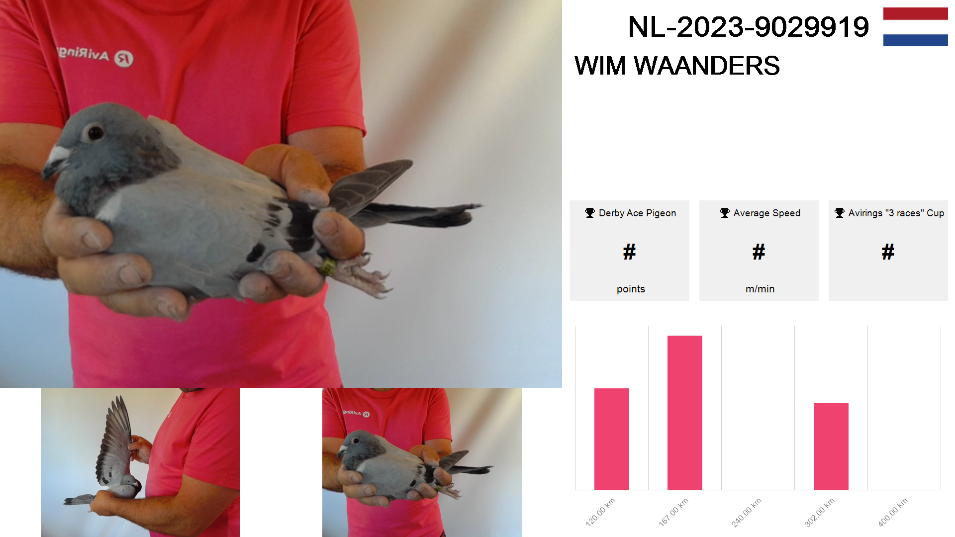 | Race | Position | Number of pigeons | Percent | Speed | Distance |
