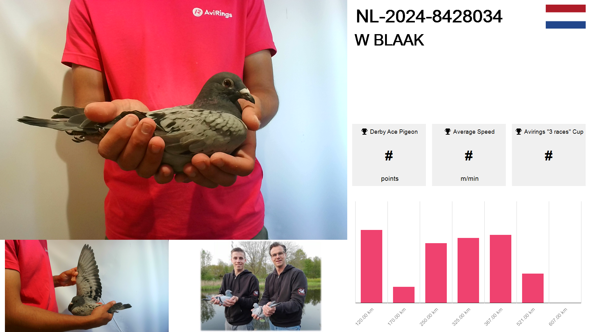 | Race | Position | Number of pigeons | Percent | Speed | Distance |