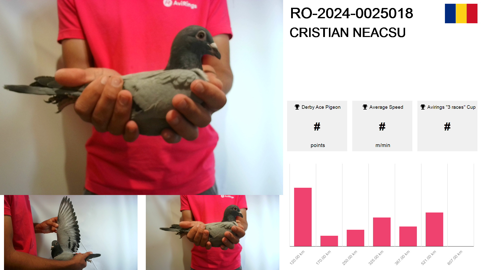 | Race | Position | Number of pigeons | Percent | Speed | Distance |