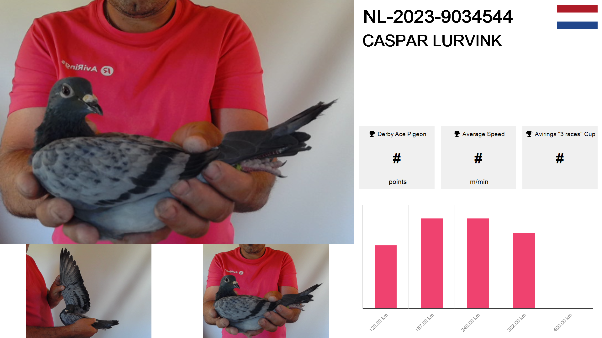 | Race | Position | Number of pigeons | Percent | Speed | Distance |