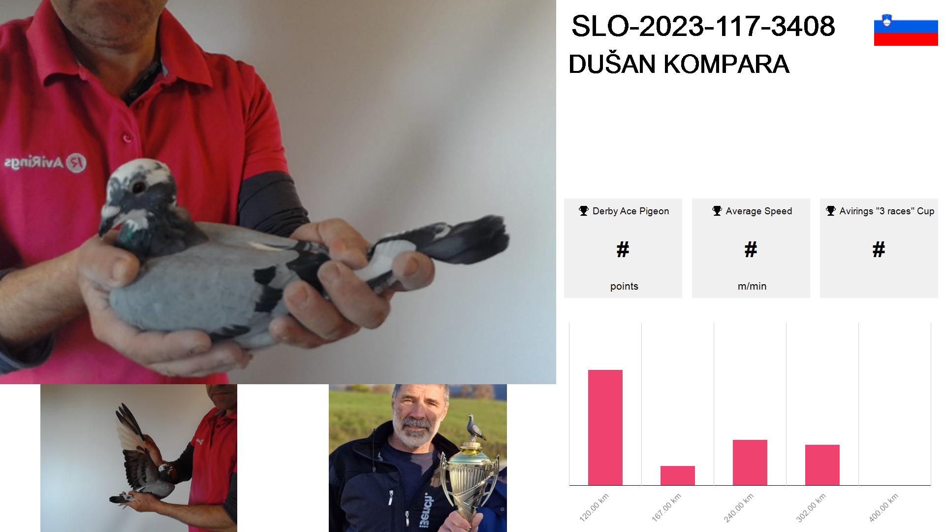 | Race | Position | Number of pigeons | Percent | Speed | Distance |