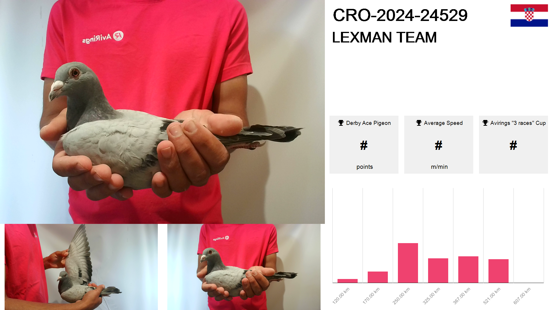 | Race | Position | Number of pigeons | Percent | Speed | Distance |
