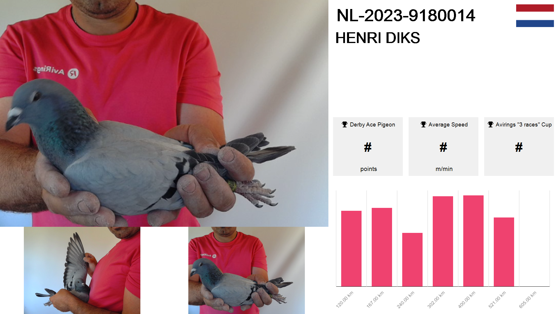 | Race | Position | Number of pigeons | Percent | Speed | Distance |
