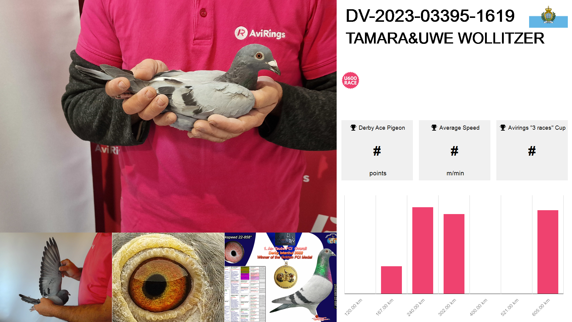 | Race | Position | Number of pigeons | Percent | Speed | Distance |