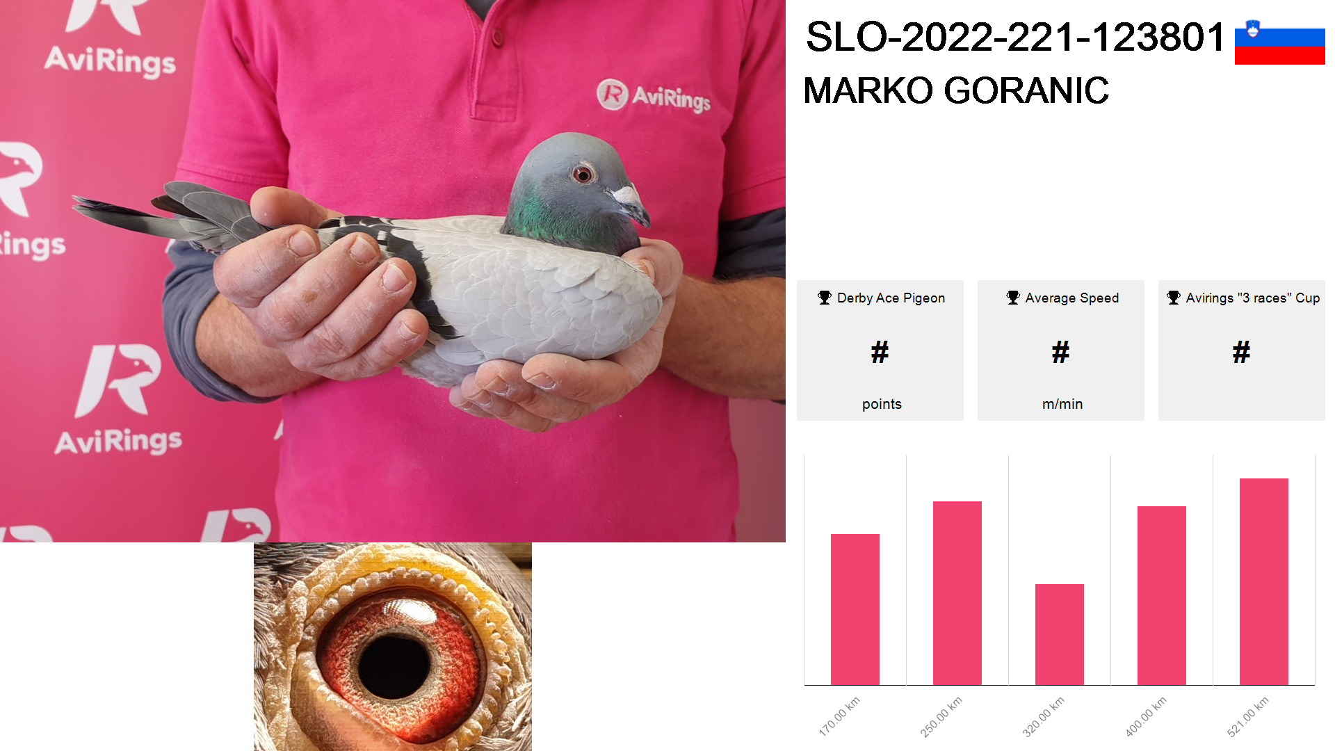 | Race | Position | Number of pigeons | Percent | Speed | Distance |