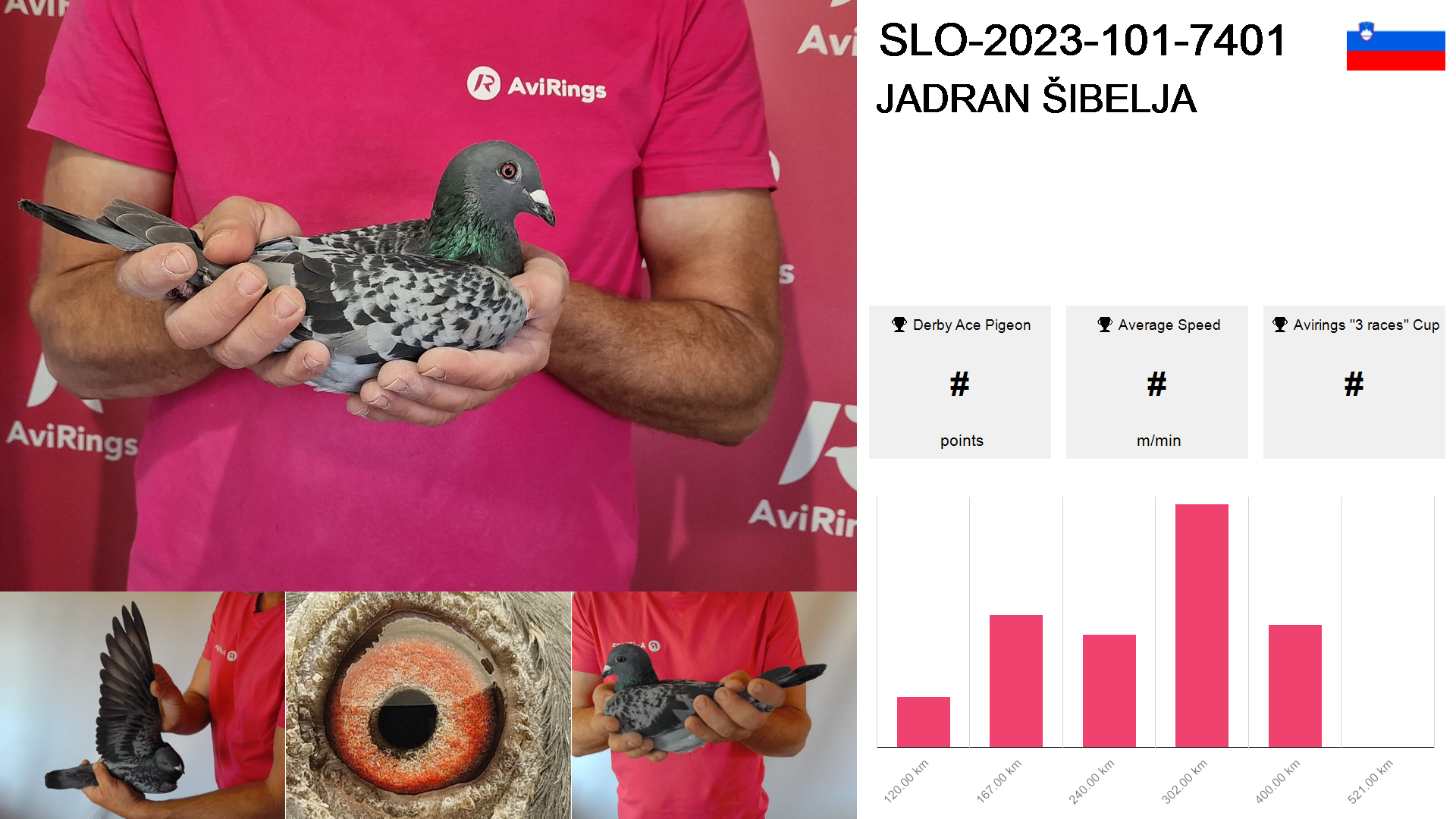 | Race | Position | Number of pigeons | Percent | Speed | Distance |