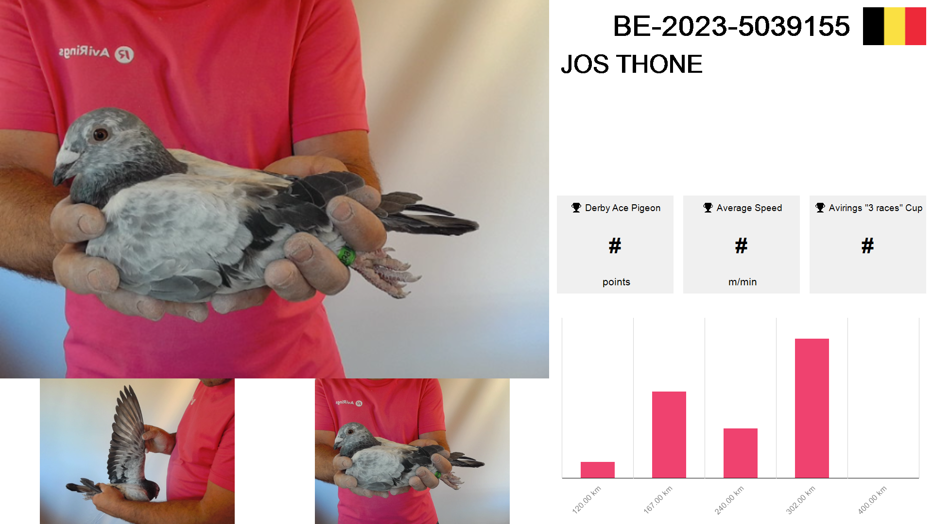 | Race | Position | Number of pigeons | Percent | Speed | Distance |