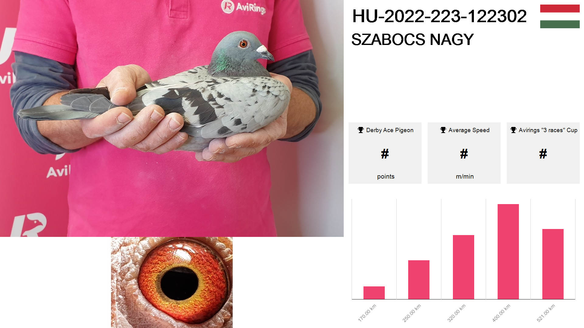 | Race | Position | Number of pigeons | Percent | Speed | Distance |