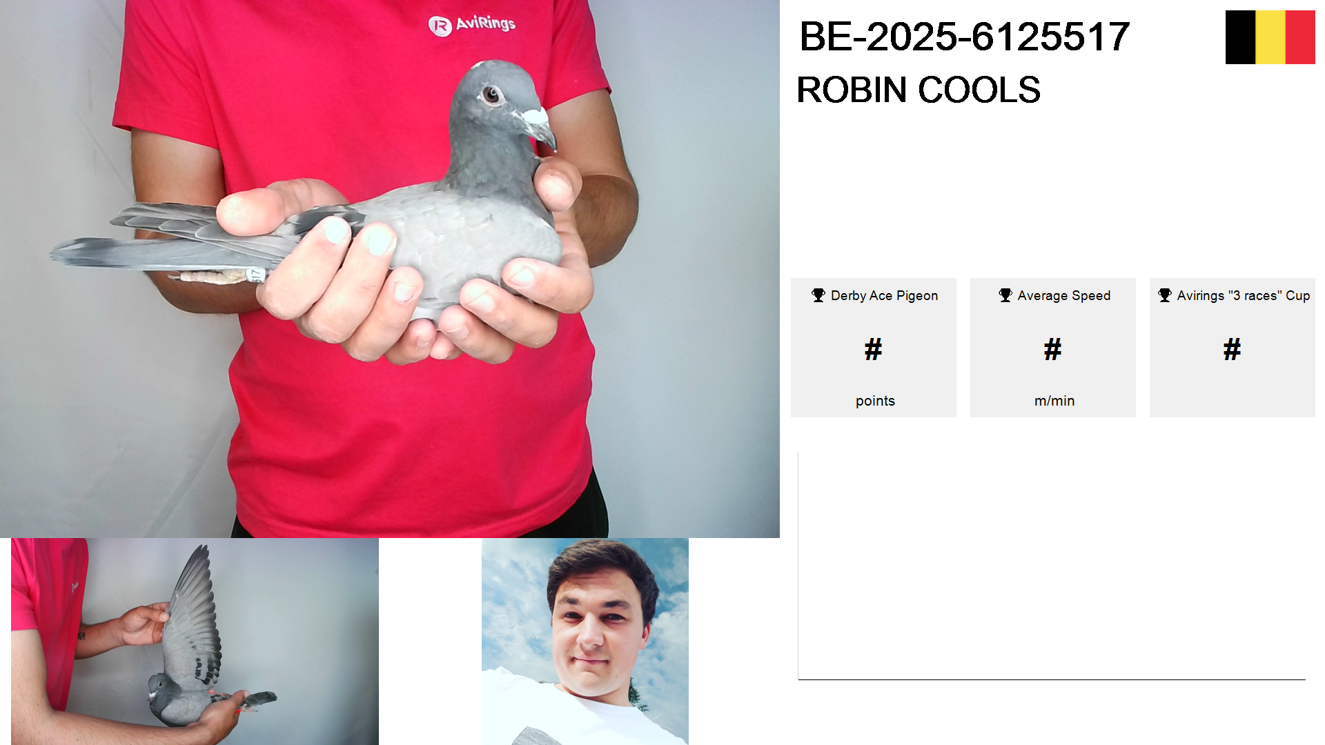 | Race | Position | Number of pigeons | Percent | Speed | Distance |