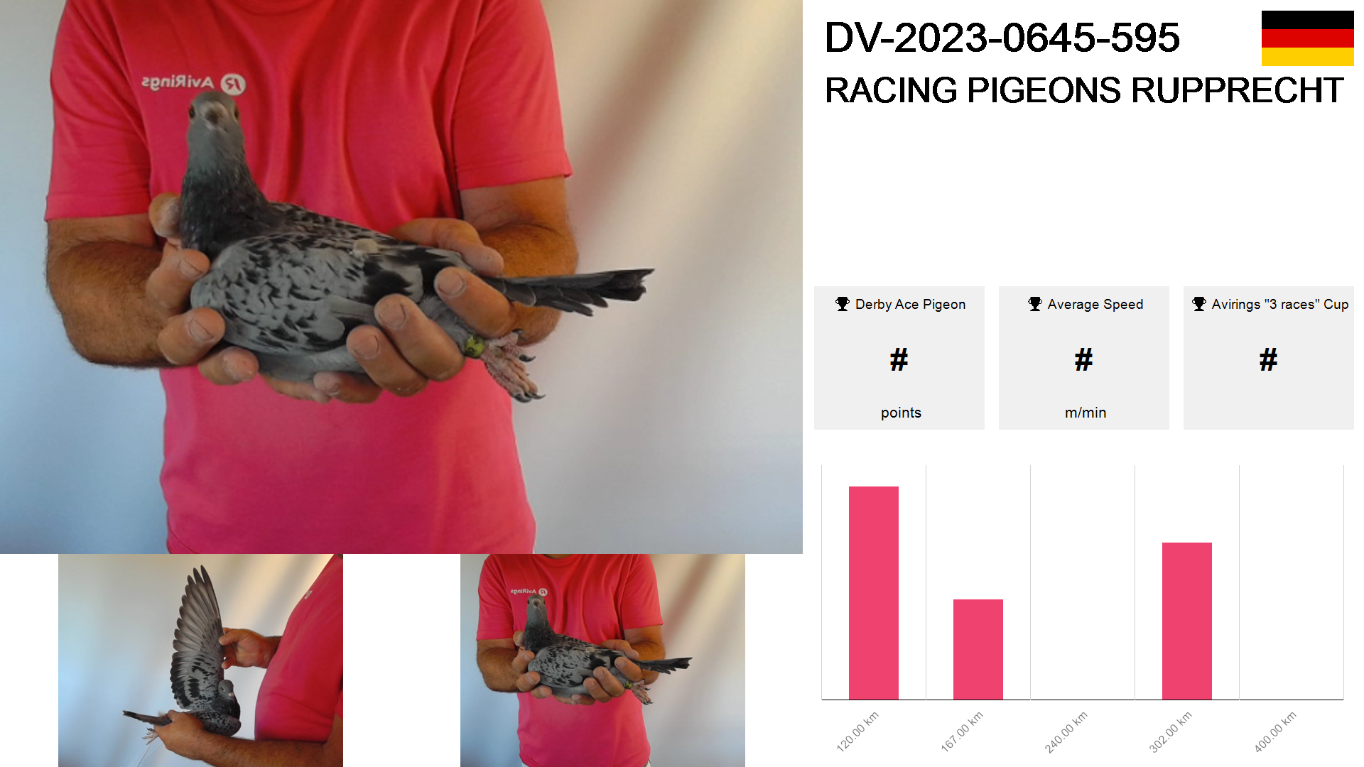 | Race | Position | Number of pigeons | Percent | Speed | Distance |