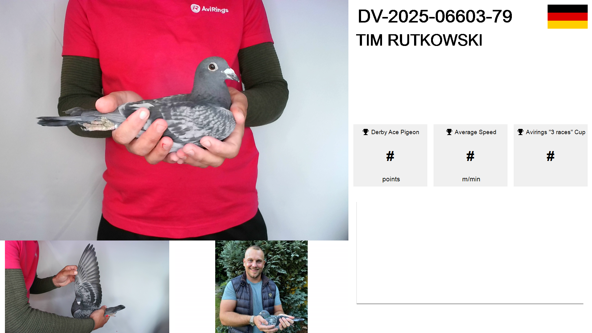 | Race | Position | Number of pigeons | Percent | Speed | Distance |