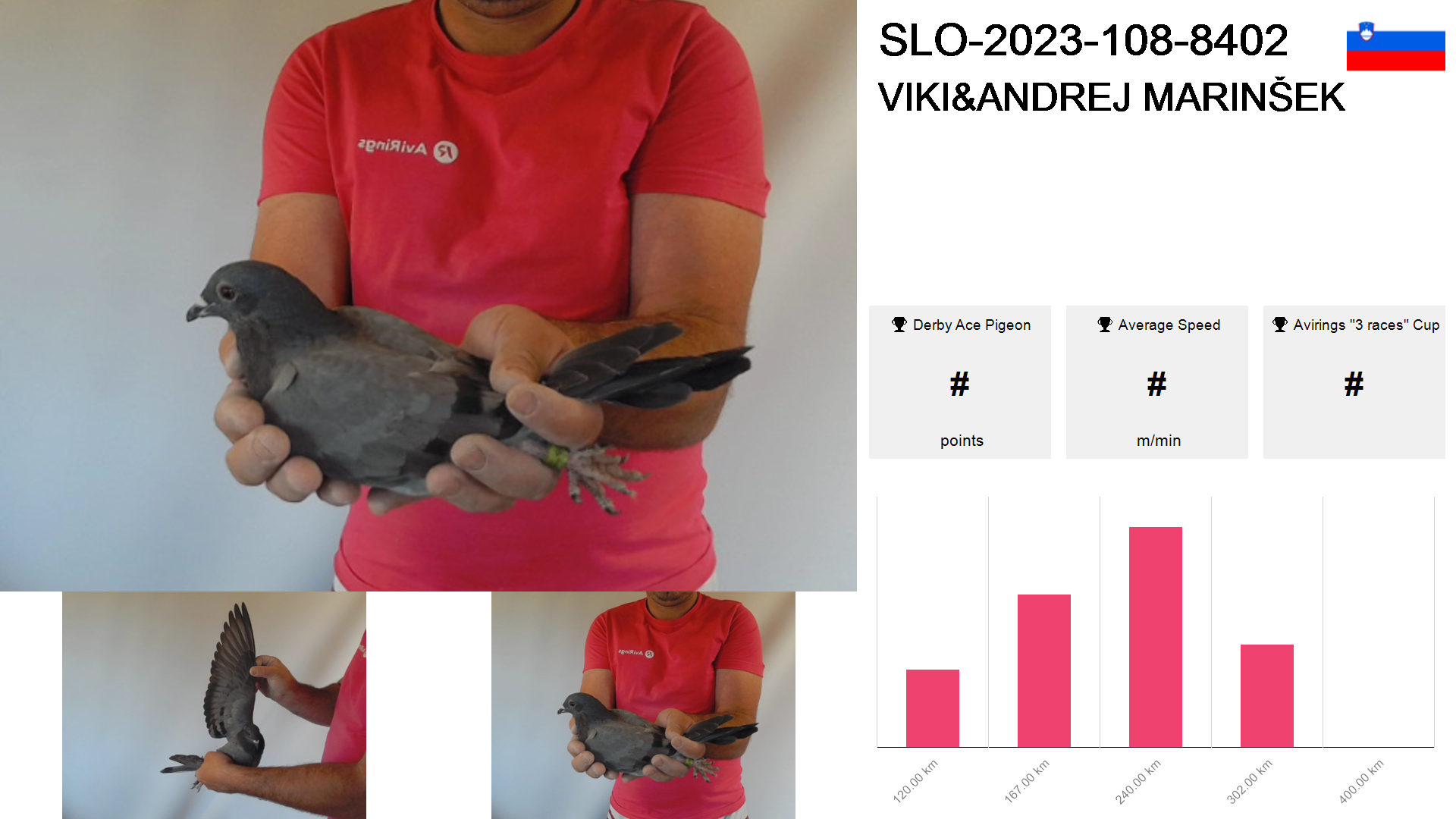 | Race | Position | Number of pigeons | Percent | Speed | Distance |