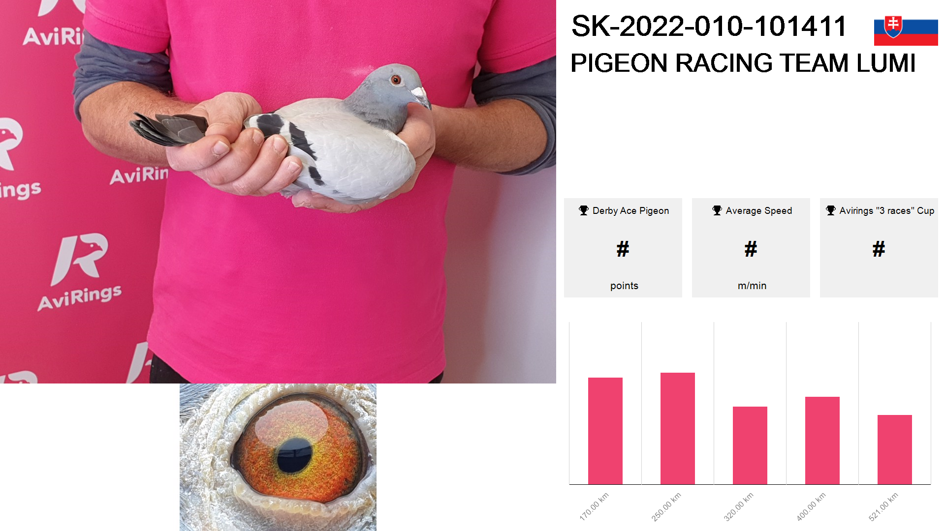 | Race | Position | Number of pigeons | Percent | Speed | Distance |