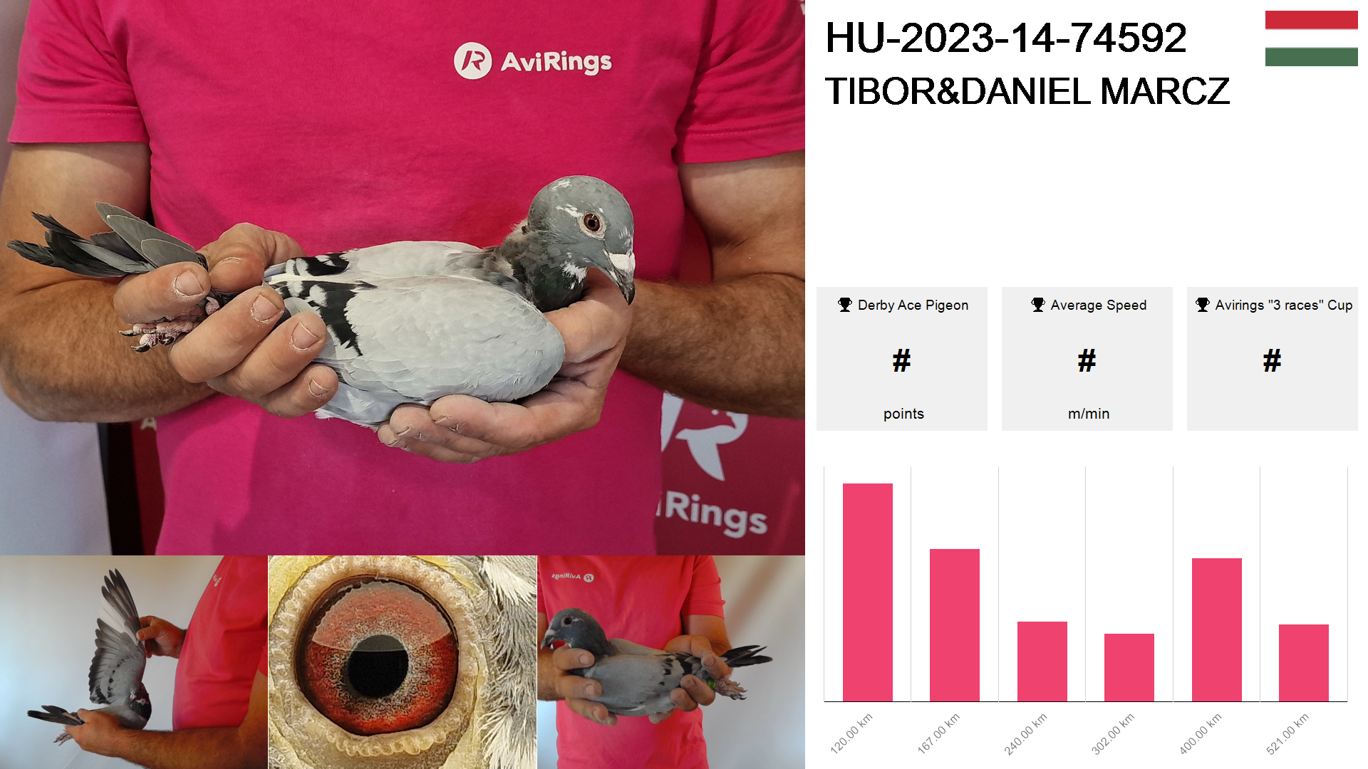 | Race | Position | Number of pigeons | Percent | Speed | Distance |