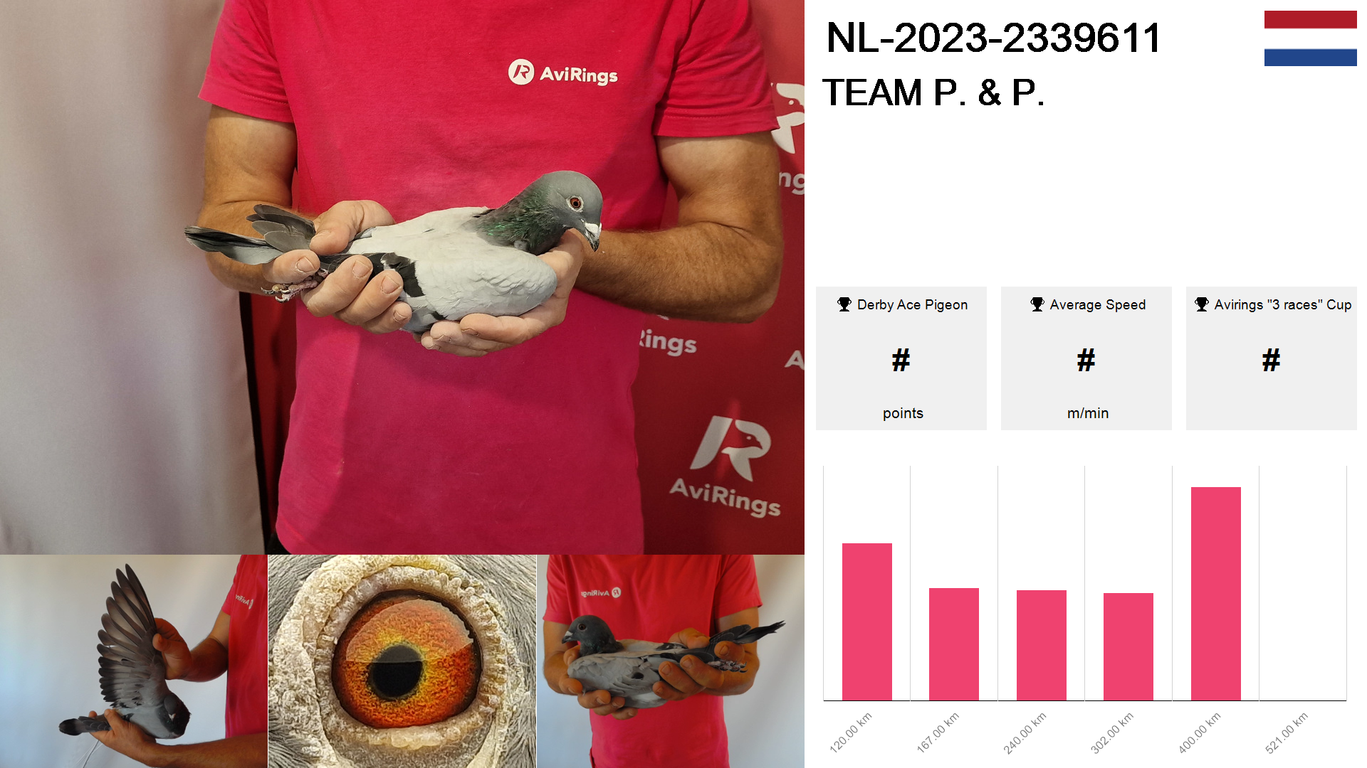 | Race | Position | Number of pigeons | Percent | Speed | Distance |