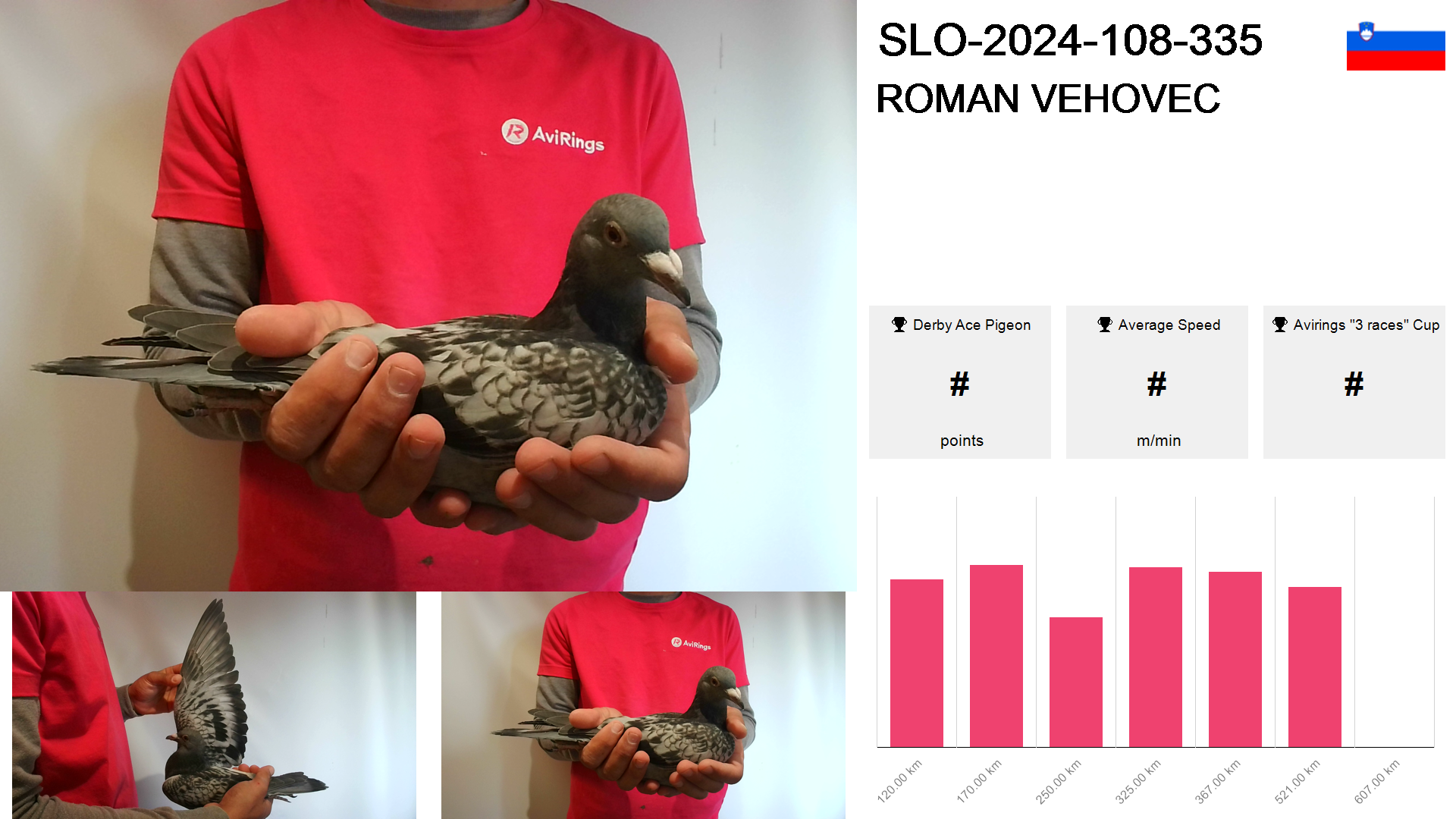| Race | Position | Number of pigeons | Percent | Speed | Distance |