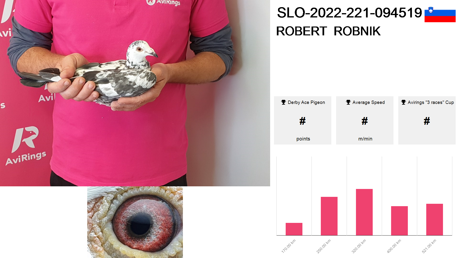 | Race | Position | Number of pigeons | Percent | Speed | Distance |