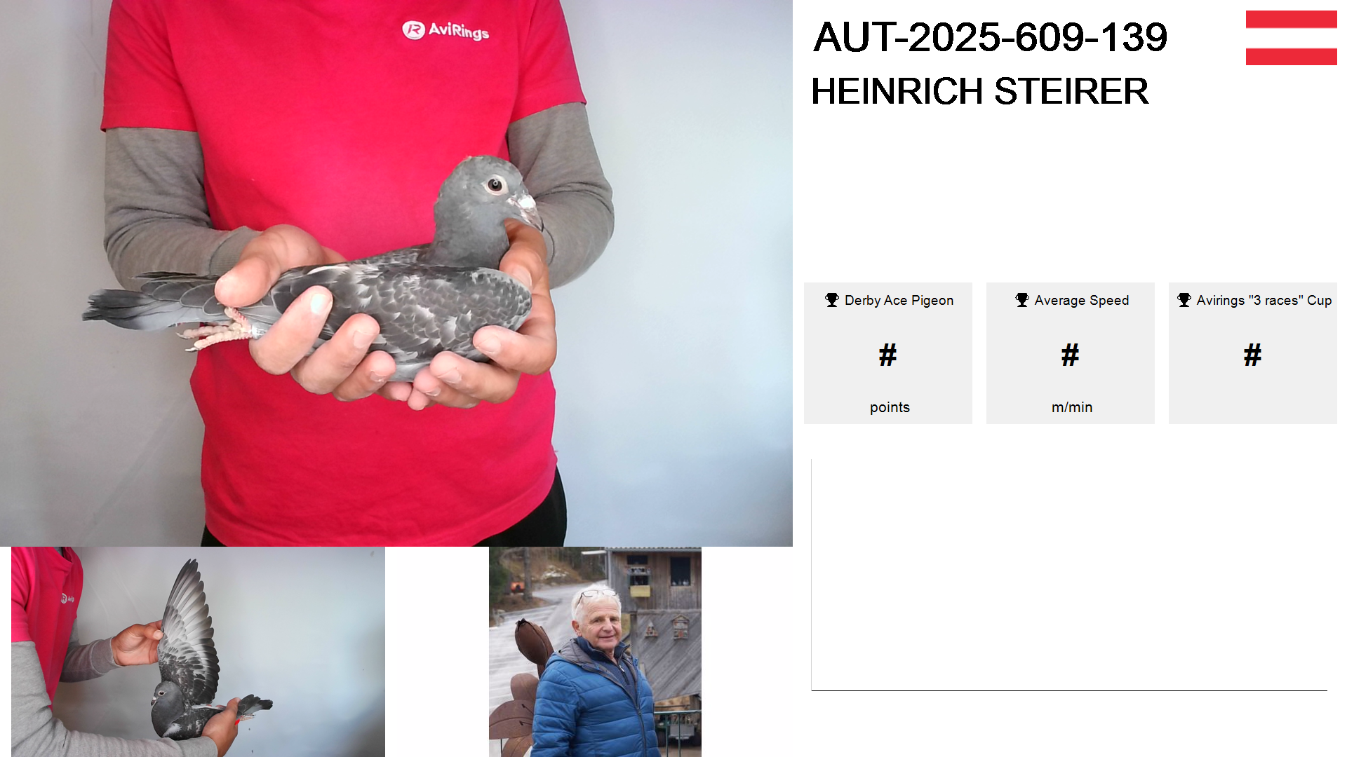 | Race | Position | Number of pigeons | Percent | Speed | Distance |
