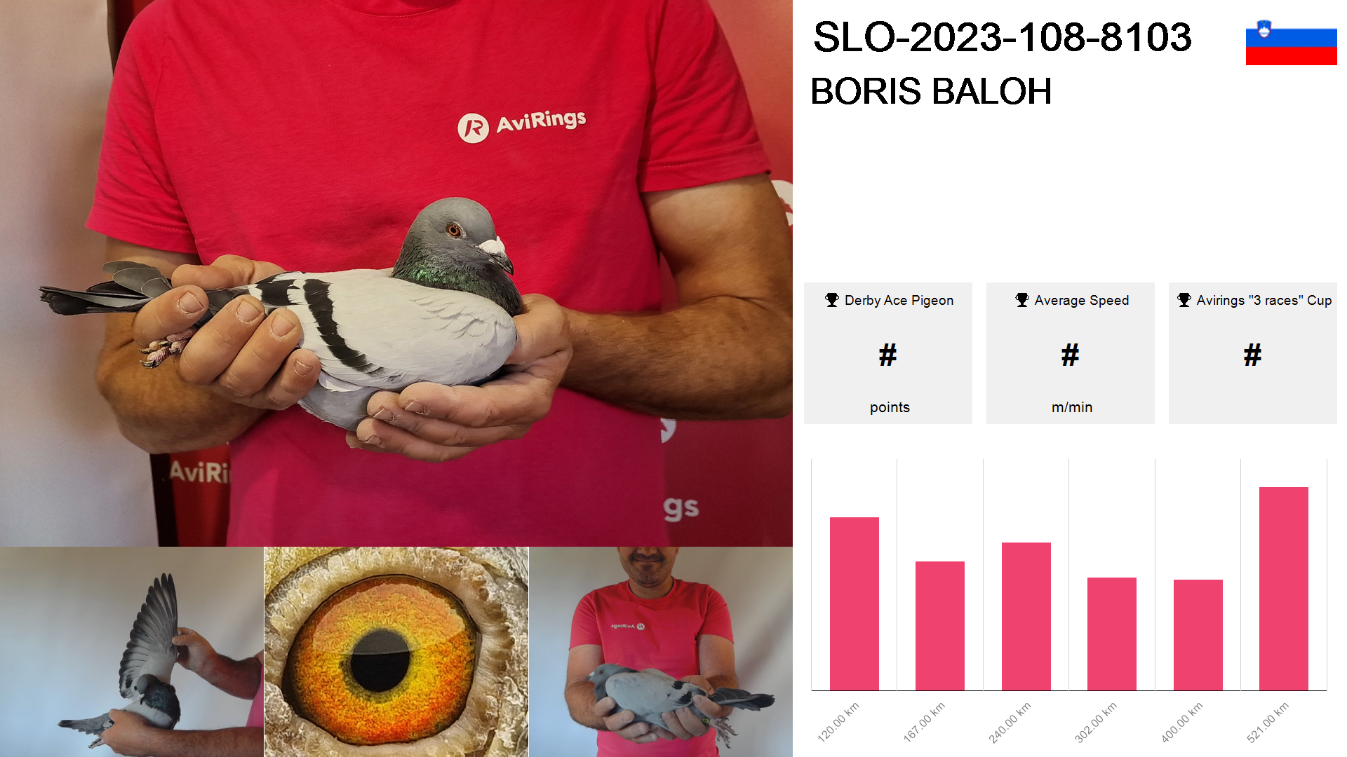 | Race | Position | Number of pigeons | Percent | Speed | Distance |