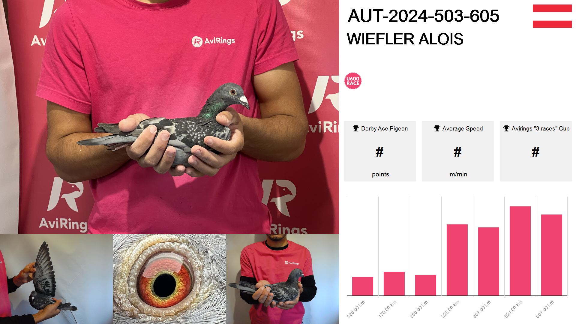 | Race | Position | Number of pigeons | Percent | Speed | Distance |