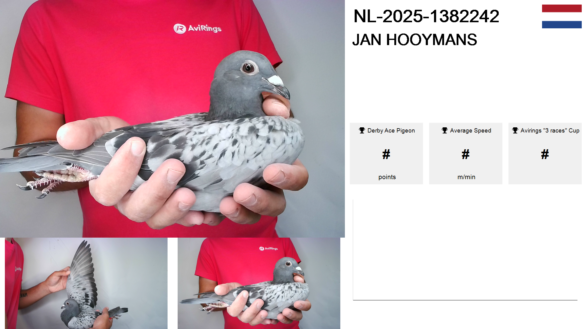 | Race | Position | Number of pigeons | Percent | Speed | Distance |
