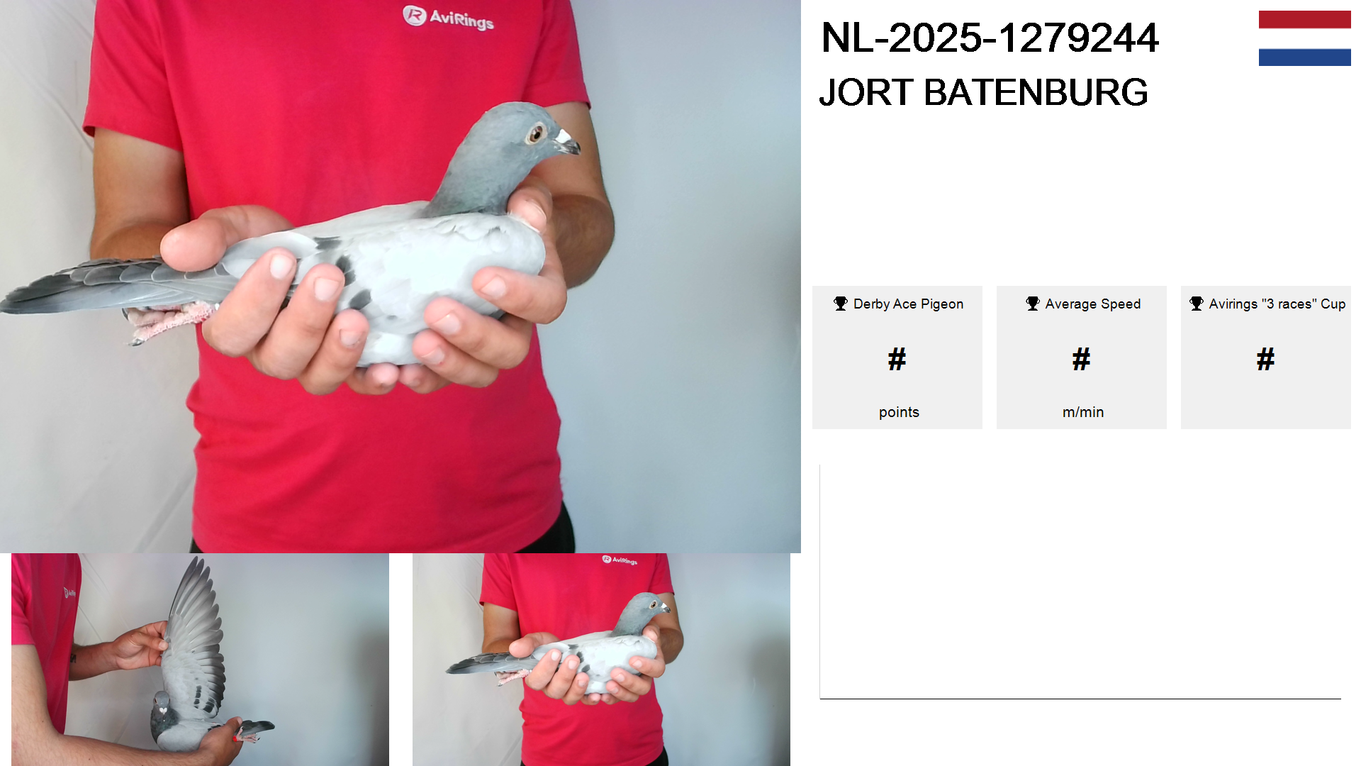 | Race | Position | Number of pigeons | Percent | Speed | Distance |
