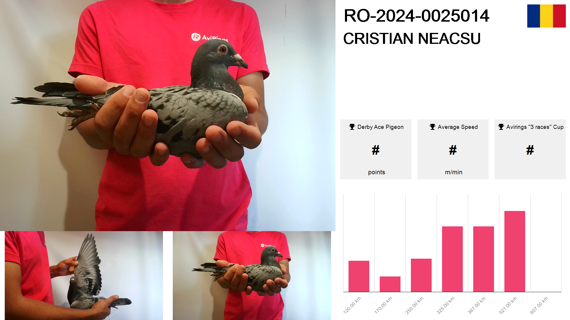 | Race | Position | Number of pigeons | Percent | Speed | Distance |