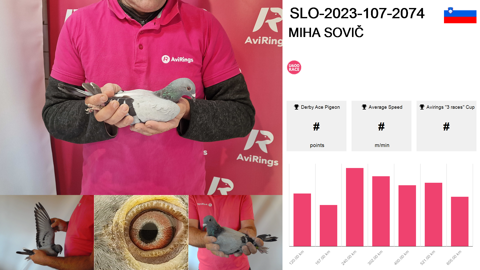 | Race | Position | Number of pigeons | Percent | Speed | Distance |