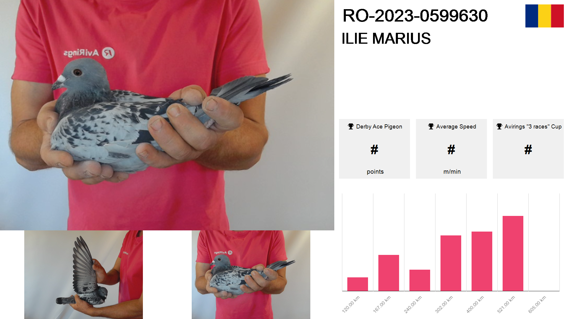 | Race | Position | Number of pigeons | Percent | Speed | Distance |