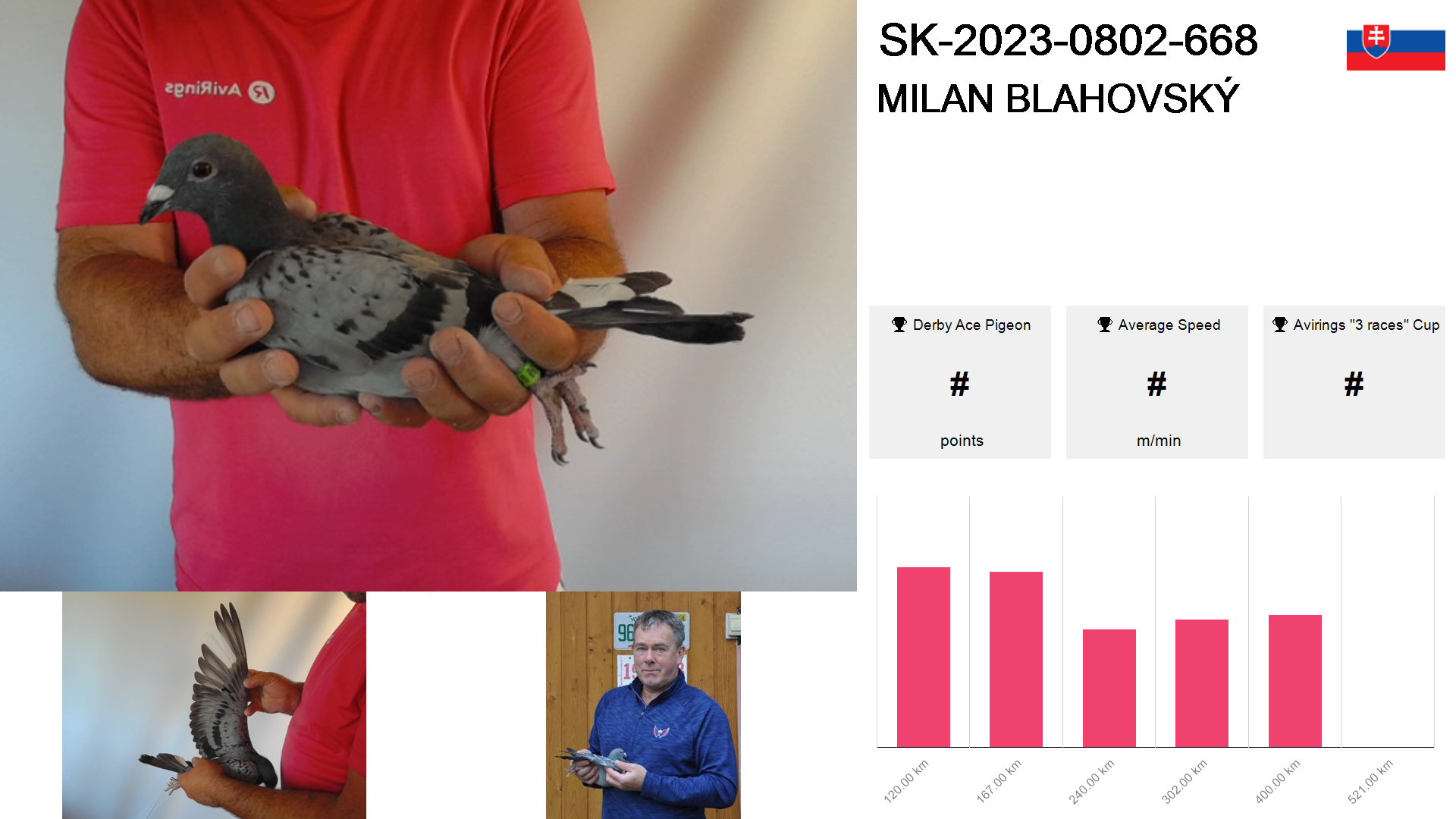 | Race | Position | Number of pigeons | Percent | Speed | Distance |