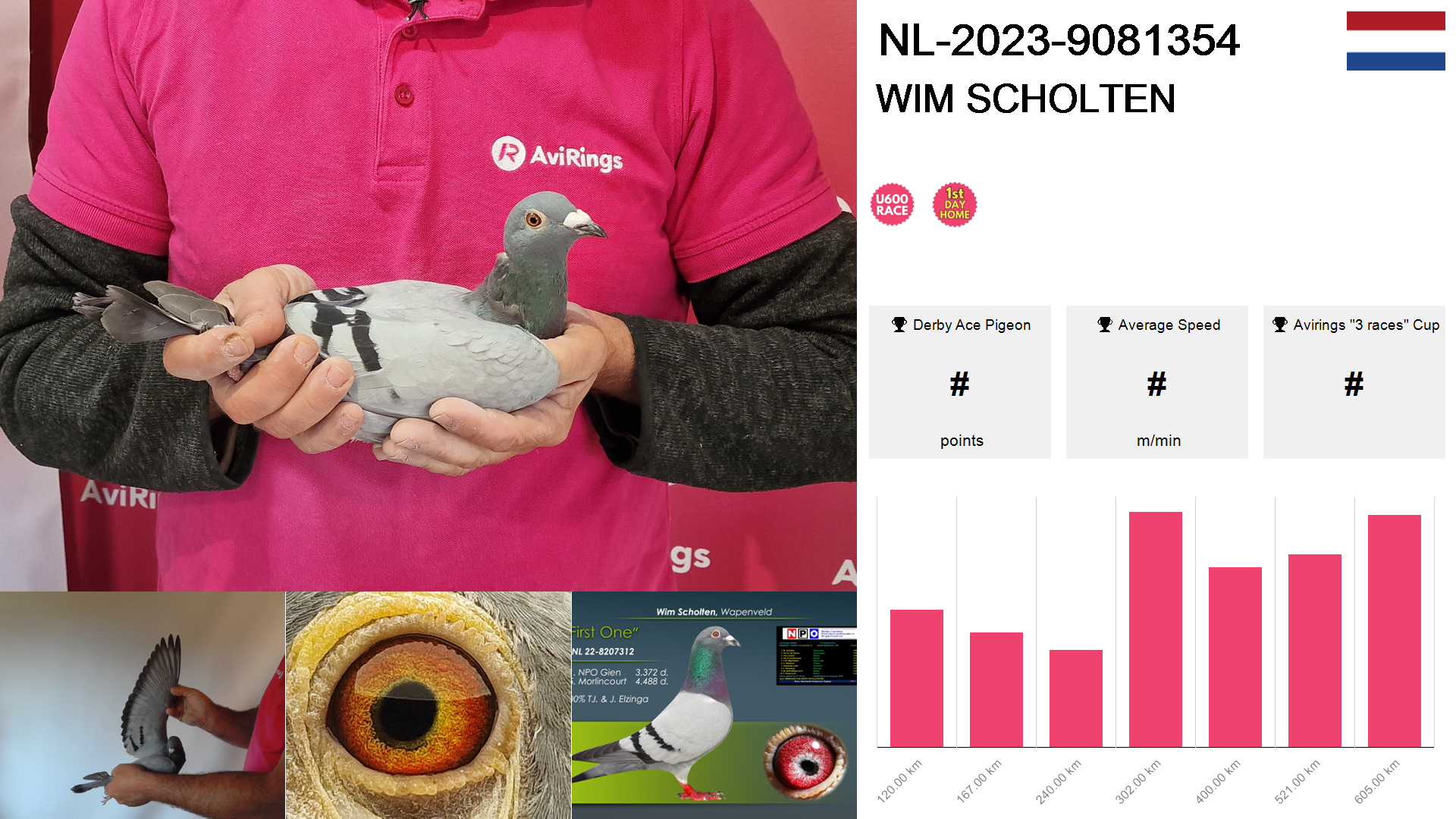 | Race | Position | Number of pigeons | Percent | Speed | Distance |