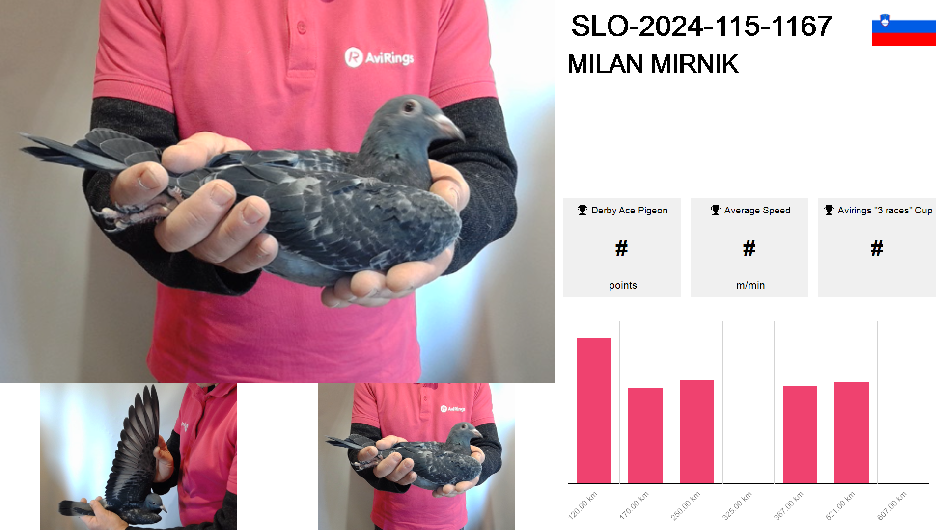 | Race | Position | Number of pigeons | Percent | Speed | Distance |