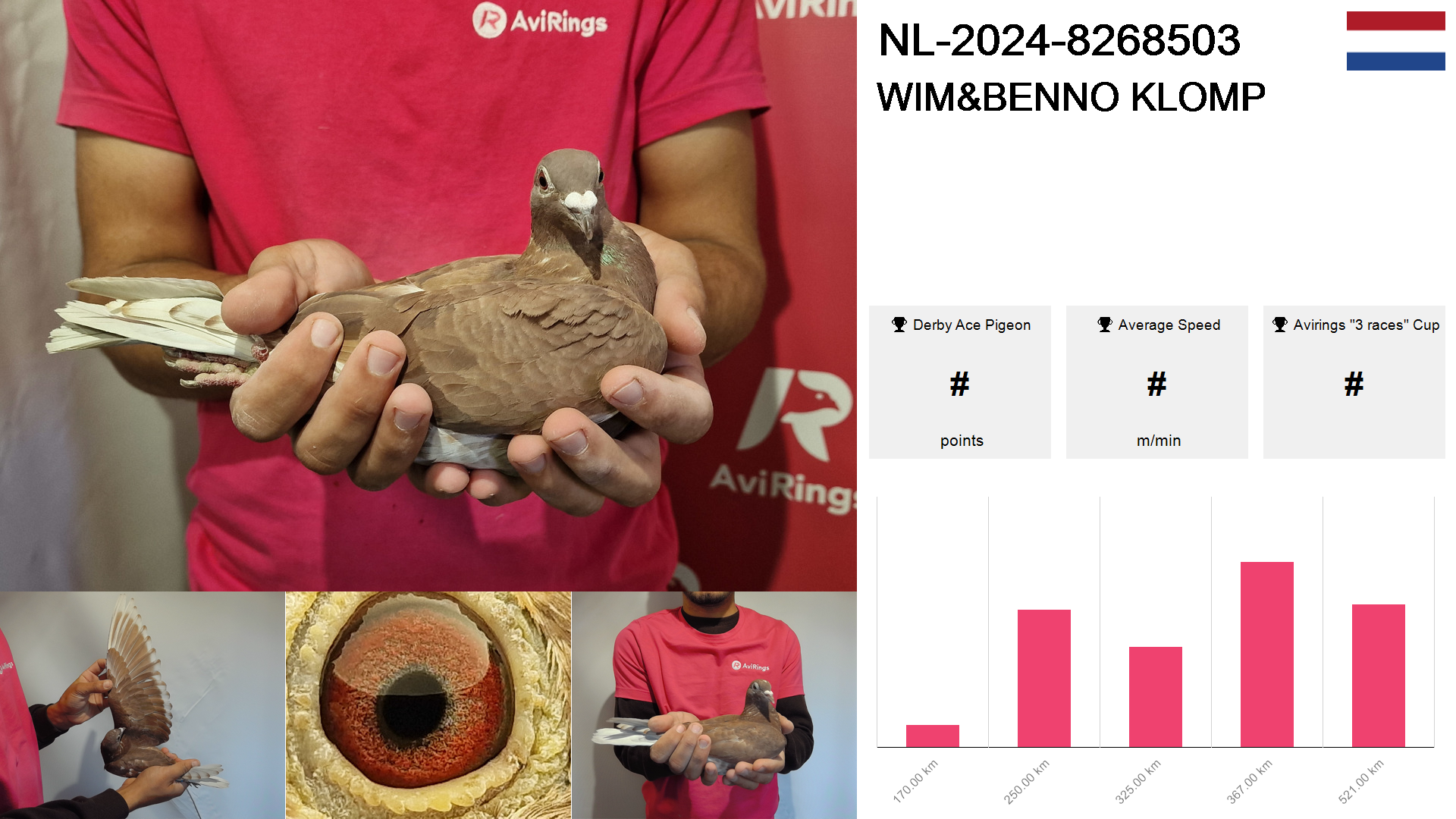 | Race | Position | Number of pigeons | Percent | Speed | Distance |